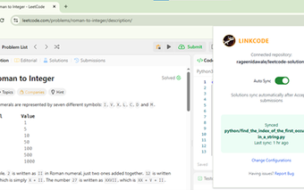 LinkCode è un'estensione leggera per Chrome che permette di sincronizzare automaticamente le soluzioni accettate di LeetCode in un repository GitHub controllato dall'utente. Questa estensione elimina la necessità di copiare e incollare manualmente le soluzioni, garantendo una cronologia del codice pulita e organizzata. LeetCode non offre un metodo integrato per esportare le soluzioni accettate, e LinkCode colma questa lacuna, consentendo agli utenti di gestire il proprio percorso di problem-solving in modo strutturato.